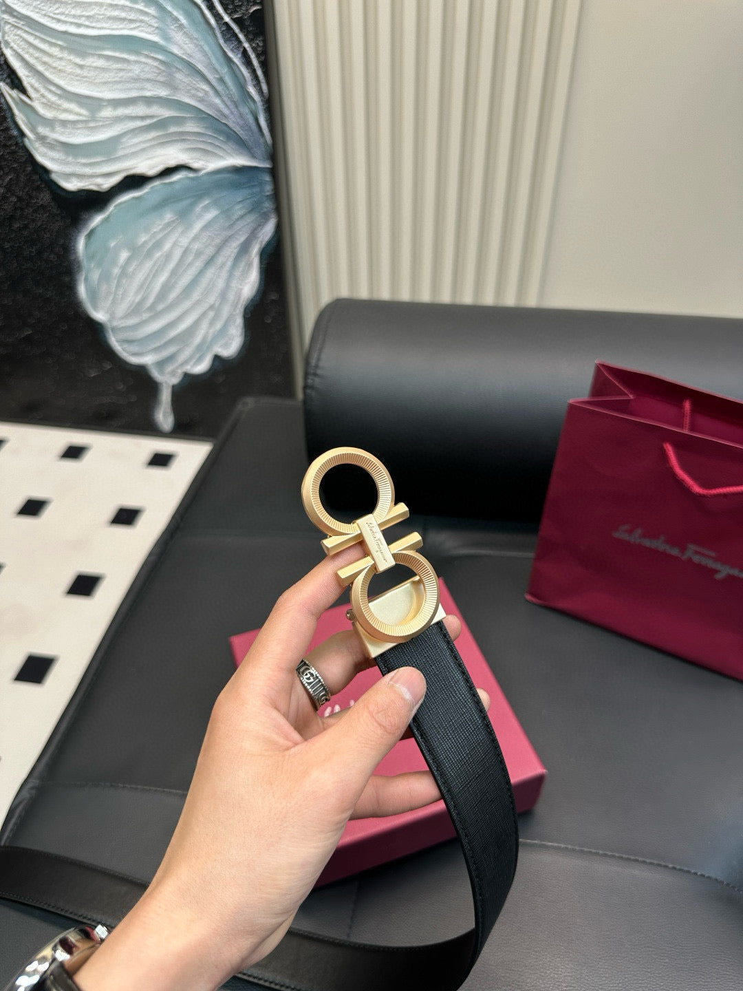 Ferragamo Gear pattern, frosted surface, steel buckle